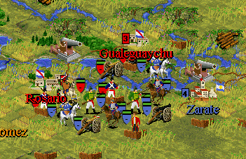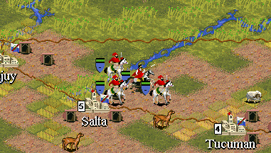 Screenshot 1: The 1st Regiment 'Patricios' from Buenos Aires holds the line against the Patagonian indians, who unceasently raid to loot and pillage.