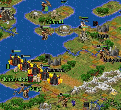 For a short time Euphrattis priests managed to liberate Eridu and get half a dozen flying demons and a ghost rider under their control. But they all were soon killed by Stygian Lucifers.