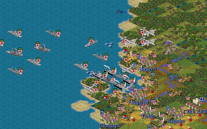 covered by a far support group consisting of the Haruna and the Kongo, the main japanese landing forces begin attacking the allied positions in the gulf of Lingayen.