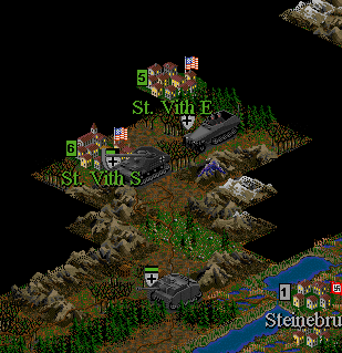 And here we have a screenshot of the already weary German armies reaching the outskirts of St. Vith from the south...