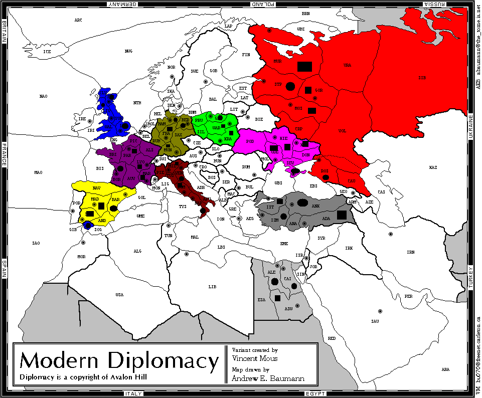 My only real house rule is that when you don't hand in moves but I think you're coming back or if I can't find a replacement, I will grab random people off AIM/ICQ to make up orders for the unordered. In this game no units will just sit there. Consider yourself warned.