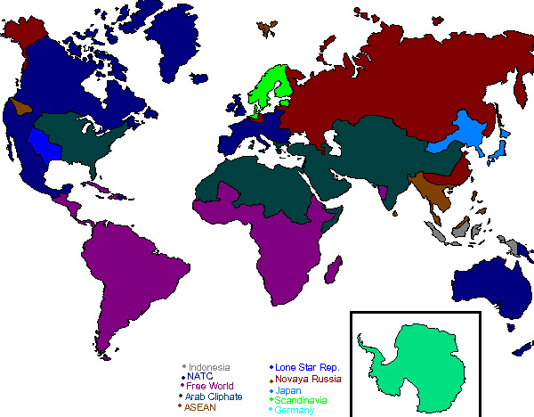 ASEAN takes Svalbard but doesn't removes claim over Antarctica - it claims exact same portion of land as Novaya Russia does. ASEAN however does not starts war - it seems it wants either to provocate Russia to do that firstly either it actually does not wants war at all (it just wants to use the "possible war" flag to make defense budget raises more popular). ASEAn asked NATC to do a referendum in Papua New Guinea werether people wants to join NATC. ASEAN recognised Texasian independence.