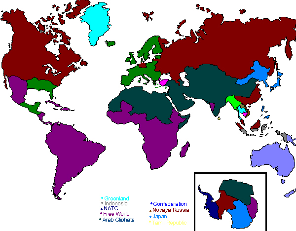 Greenland is accused of settling northern islands of Russian-controlled Canada. It seems that Greenland tries to take Northern Canada by non-military means, by settling it with own citizens (eskimos). In the newly created Greenlandic settlements in north Canada everything is like in Greenland - Greenlandic money is being used, etc. Huge distances of Canadian coast makes the area hard to control for Russian army.