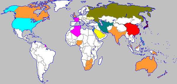 Note: I will control the white nations (and maybe a country too) and the events. Note that you can choose almost any nation, you are not limited to the colored ones. Just request a country and I'll give you the stats! Also, "industrialization" is a measure of how industrially developed a country is, which also reflects to a certain extent how technologically advanced it is. Military and economy is like in GDNES2. Oh, and one last thing: 1 day=6 months