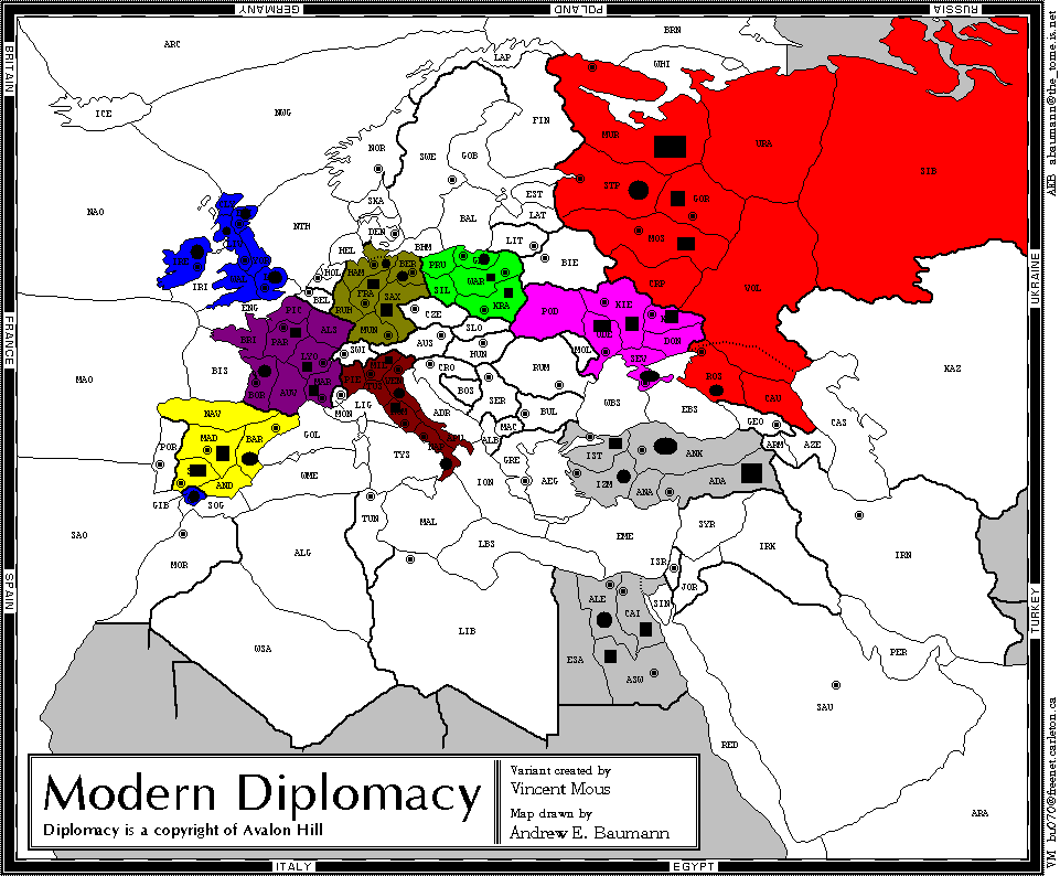 My only real house rule is that when you don't hand in moves but I think you're coming back or if I can't find a replacement, I will grab random people off AIM/ICQ to make up orders for the unordered. In this game no units will just sit there. Consider yourself warned.