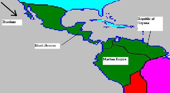 So one of the kingdoms, called the Martian Empire in memory of Marsman, has conquered Southwest Azteca and gone communist. The other kingdom is now a republic in control of Southeast Aztec called the Republic of Guyana. The other members of the native alliance have been pulled into war with both of them. I'll put up a new map of the area this afternoon. Of the split Aztec empire, I will take control of the Martian Empire as civman2000 if it's OK.