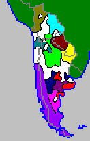 The colors on the map are the 11 main factions. The white is areas that are controlled by minor factions or are highly contested. A few factions of note: