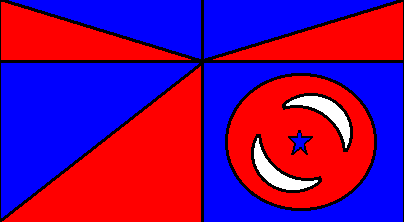 • Here is the "Royal Band", the official flag of Semeria and it's provinces. The blue represents the pureness of the country and people, the red represents the blood spilt for the country (against the Spanish and Gaul) to be formed, and the emblem in the bottom right corner is the official sign of Leviethism, inwhich most of the country is based upon. However, the sign was originally the sign of Semeria, but it was adopted by the new Leveithists that formed in the country.