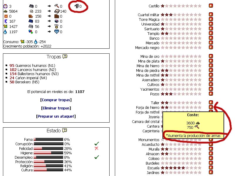Por qué si es que tengo 2 estrellitas en Forja de hierro que se supone que da armas, me aparece arriba en el listado de producción que la ciudad produce 0 armas? :extrañado: