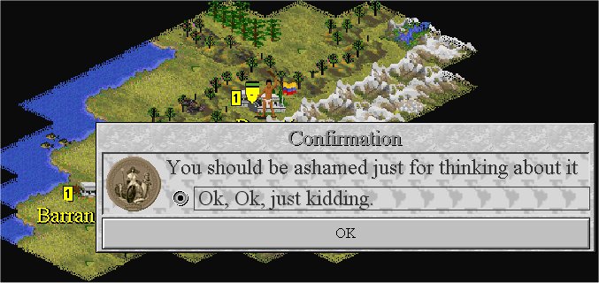 Sólo tengo una duda ¿este escenario es para Civ 2 o para Civ 3?... ...¡Ah, que para el otro no se puede (mejor dicho, no quiso Infokk)!, vale, vale no he dicho nada...