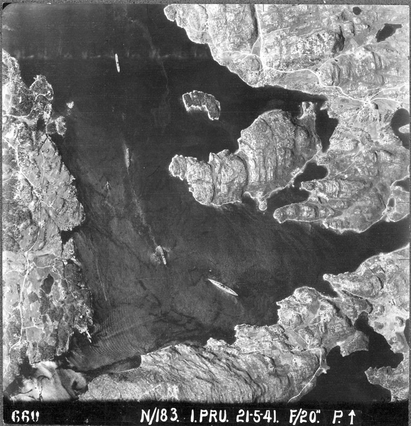 A hand out photograph dated May 21, 1941 and received on January 17, 2004 from the Aerial Reconnaissance Archives (TARA) at Keele University in north west England, shows the German battleship the Bismarck in a Norwegian Fjord during World War Two. The image, which led within seven days to the sinking of the vessel, is one of more than five million RAF (Royal Air Force) aerial photographs used by Allied commanders to help devise their strategy during the six-year conflict, due to be made publicly available on the internet on Monday.