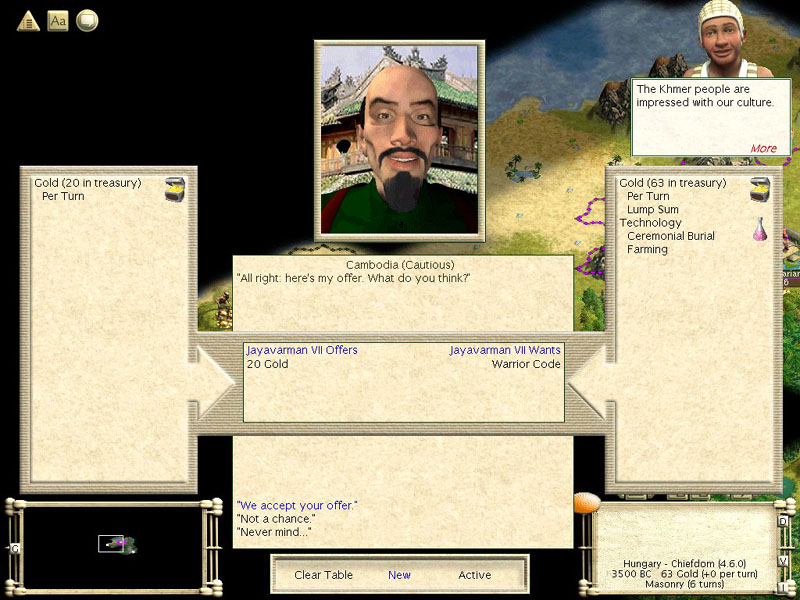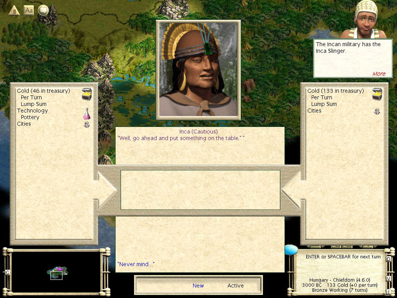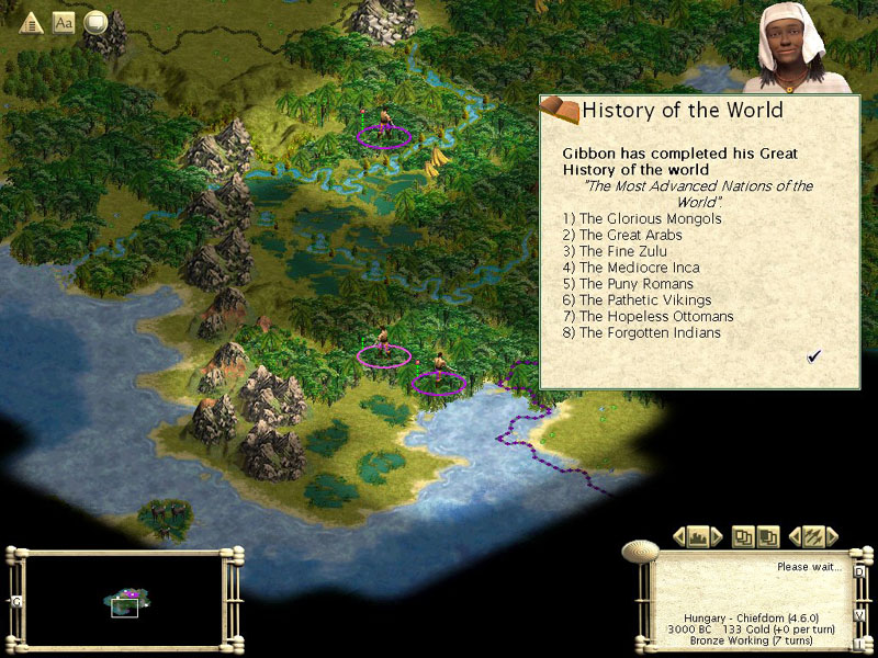 , otro contacto, y esta vez es una civ mayor. El advisor me dijo : nuestro ejercito es pequeño, tienen mas cultura, son mas avanzados, etc, etc, por lo que ya suponemos que hay muchas mas civs cerca aqui....