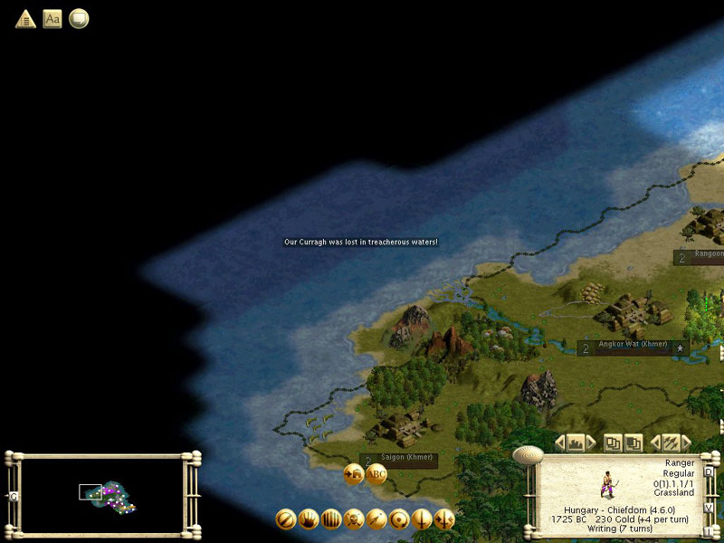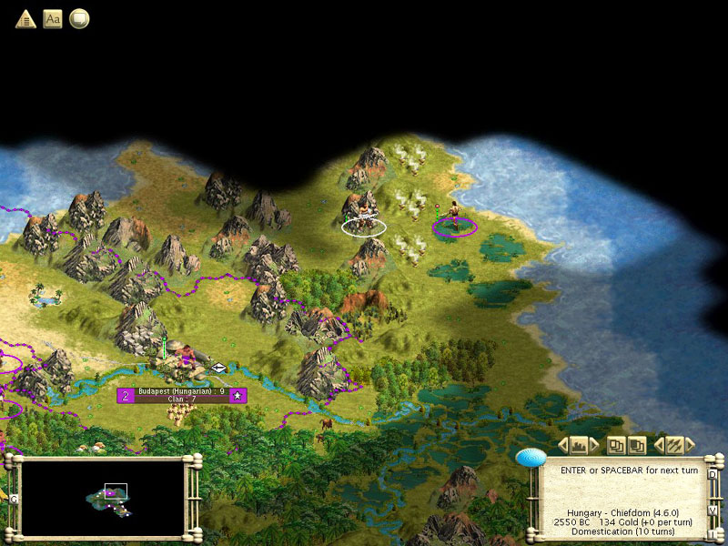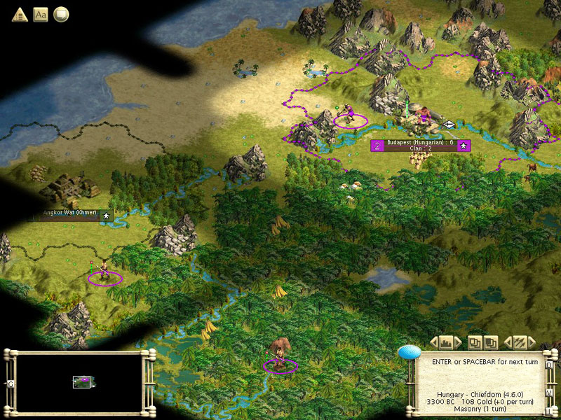 Bueno, haciendo mas exploracion nos topamos con que.. esto es una gran jungla!. Por tanto, nuestra expansion se va a ver mermada un poco hasta tener el Dinasticismo (que nos da settlers sin restricciones pero de coste 2)