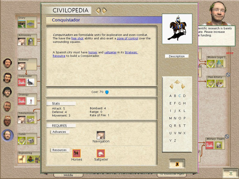 El nuevo Conquistador es mas fuerte que el Pikeman y, a lo que esta pensado, contra las unidades Americanas. asi pueden intentar colonizar tambien en el civ