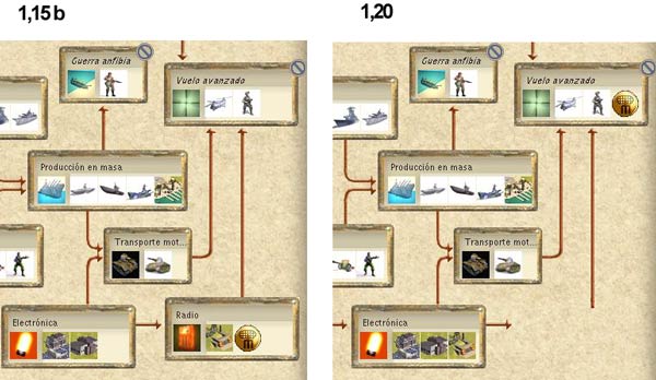 Han pasado la habilidad de construir torres de radar a la casilla de "vuelo avanzado" y la "defensa civil" a electrónica, y se han cargado la casilla de la "radio".