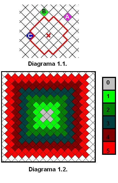 Si asociamos un color a cada valor de la distancia en cada casilla obtendríamos un dibujo como el del Diagrama 1.2.
