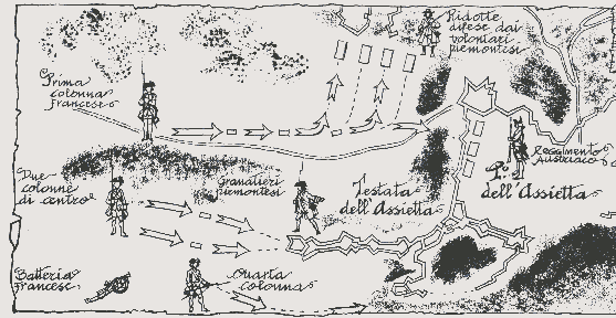 . This was the battle plans tempted by french marshal Belle Isle to take Assietta's fortified top.