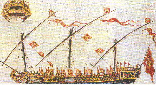 Y el diagrama de battalla de una flottilla naval, buscada dal tomo de Cristoforo da Canal, "Trattato de la milizia marittima", como la imagine de la galeazza.