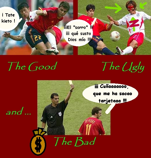 Ciertamente, 2 goles legales anulados y 4 fueras de juego que no eran, ... hmmm, demasiados errores arbitrales.Last edited by Kramsib; June 22, 2002, 06:31.«… Santander, al marchar te diré, guarda mi corazón, que por él volveré ». // Awarded with the Silver Fleece Medal SEP/OCT 2003 by "The Spanish Civilization Site" Spanish Heroes: "Blas de Lezo Bio" "Luis Vicente de Velasco Bio" "Andrés de Urdaneta Bio" "Don Juan de Austria Bio"