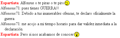 Teniendo en gran estima y consideración tu esfuerzo por aniquilarme y expulsarme del mundo que ahora mismo compartimos, te comunico que esta misma tarde estaré a tu disposición para tal propósito, a eso de las 7 de la tarde, si te viene bien. No obstante, de 9 a 10:30 es preferible hacer una pausa, pues hay que cenar y además mi linea telefónica estará tan ocupada que dudo que podamos jugar más de 20 minutos seguidos.