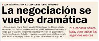 Hoy en la tapa del monopolio, digo del diario Clarín, salen dos informaciones que hablan de lo mismo: