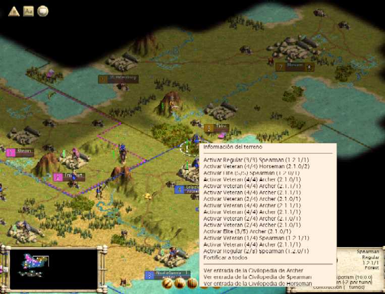 . Tenemos un spearmen y 2 archers en sus montañas, y dos archers más acercandose.