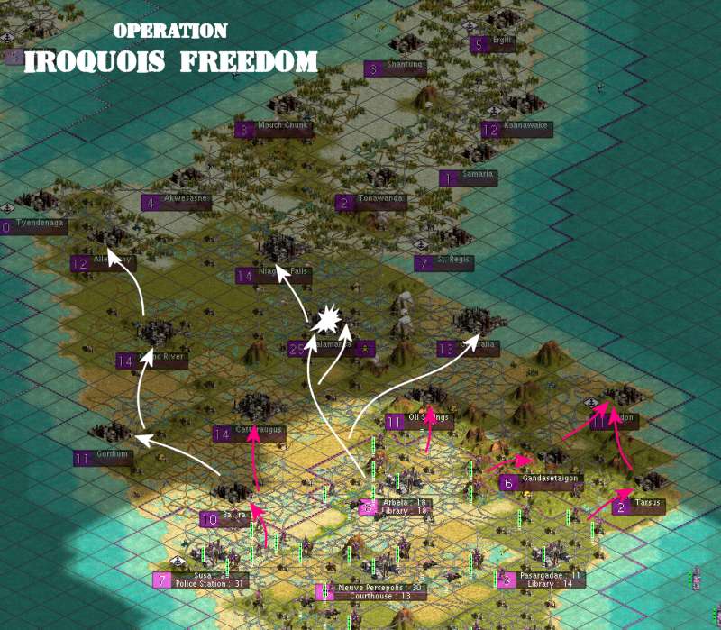 No obstante, Iroquoislandia permanece como la 3era nacion mas poderosa del orbe. Sus unidades amenazan la seguridad nacional de Francia. Asi pues, una acción preventiva será necesario para liberar al pueblo Iroquios del régimen tiránico de Hiawatha. Solo así podran aspirar a un gobierno ilustre y démocrático en base a nuestra cultura y costumbres.