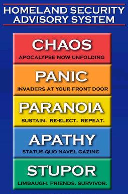 Este nivel implica la puesta en marcha de mecanimos internos con el unico fin de lavarle el cerebro a la poblacion e infundirle miedos y terror sin sentido o explicacion consistente alguna con el unico objetivo de que apoyen a su gobierno sin realizar preguntas molestas.