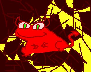 Hmmm, evil frog 3 is almost cubist. At least the background hints at it. Careful Herreson. You might accidentally become a real artist.