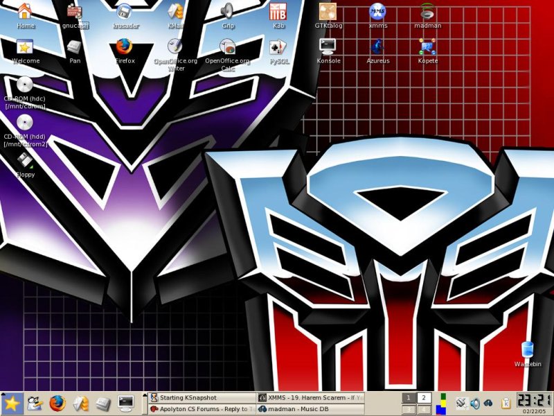 I've got four KDE desktops; this one's my favourite at the moment. (KDE 3.2, Mandrake 10.1)