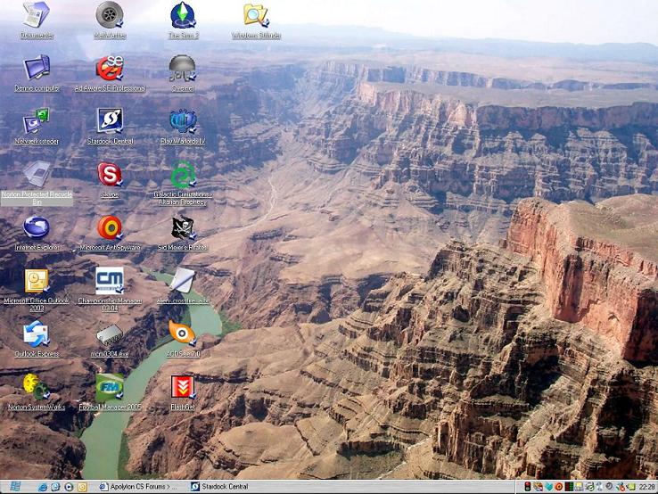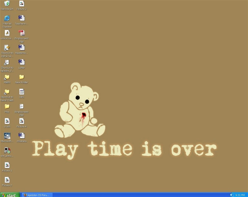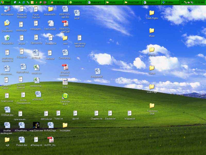 Prepare to be horified by my cluttered desktop. Just like my real desk actually. I like to have things handy. The background pic is the default for the computer, isn't that terrible? hehe.