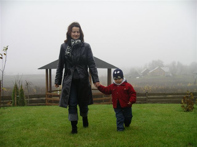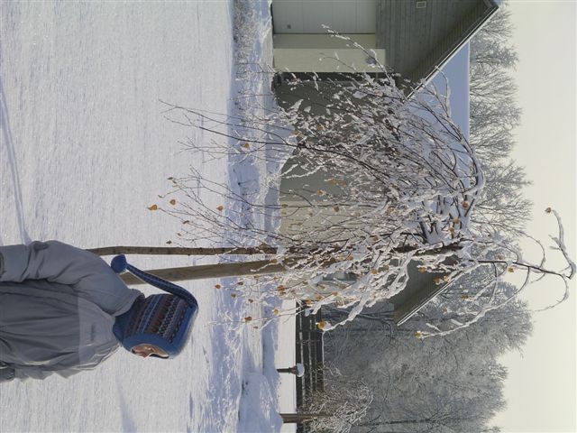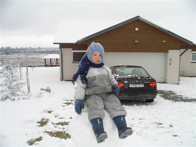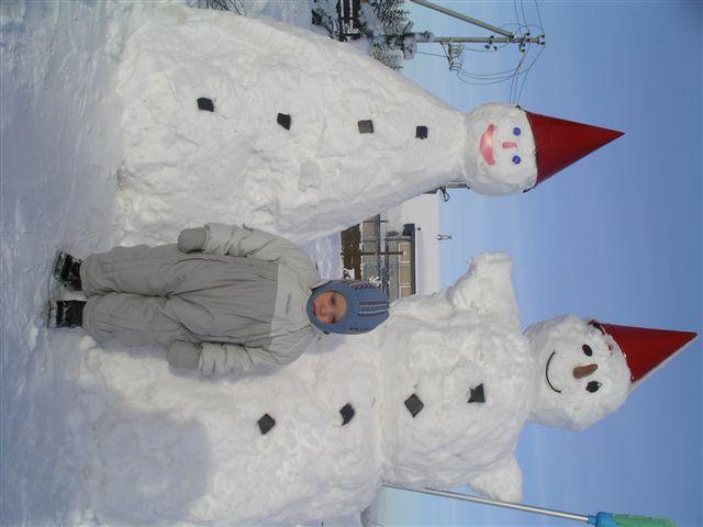 Snowman construction-in-progress. We built two big ones that day (the bouncers melted away in beginning of January )