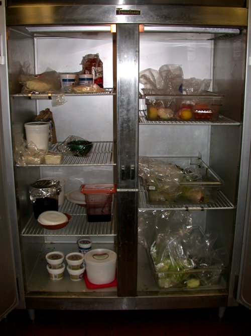 The other fridge, where produce and some leftovers are stored. We usually throw out mystery food after a couple of weeks, it looked a lot worse a few days ago.