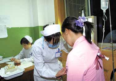 The photo below was from a recent report in a Wenxue city newspaper story illustrating a big problem with the privatization of Chinese hospitals: emergency room staffs that refuse to lift a finger of assistance until they see some cash. If you can't put down a sizeable deposit, many hospitals will refuse to help you. In this situation, the father didn't have enough for a deposit, and the girl had to wait two hours with a knife protruding from her back (see photo) before the father persuaded the police to force the hospital to help. The public reaction is indignance and anger, but it's difficult to attack such a problem. An English language translation of the article is at EastSouthWestNorth , an excellent and thoughtful blog, by the way.