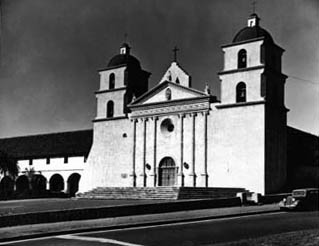 One of the larger and more prosperous Missions was Mission Santa Barbara located in the hills over looking where the city of Santa Barbara is now located. This photo is cicula 1915 and shows the front door but it doesn't show the huge complex that was this largest of the California Missions. With 20,000 cattle and as many goats, sheep, pigs, and god knows what else it was wealthy and the largest producer of wine in North America. This is a nice well preserved Mission which has a lot of original artwork on the inside due to thie Mission's wealth.Try http://wordforge.net/index.php for discussion and debate.