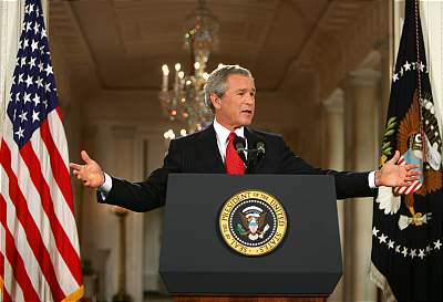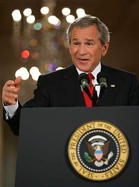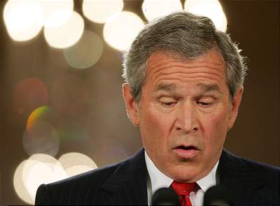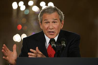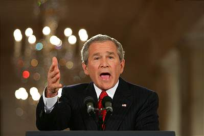 The story is that President George W. Bush held a press conference, his first in a long time, on Social Security reform among other things. At least these photos were taken while the President was talking passionately about Social Security. But how about we try to envision Bush relating this most exciting fishing trip he was on...
