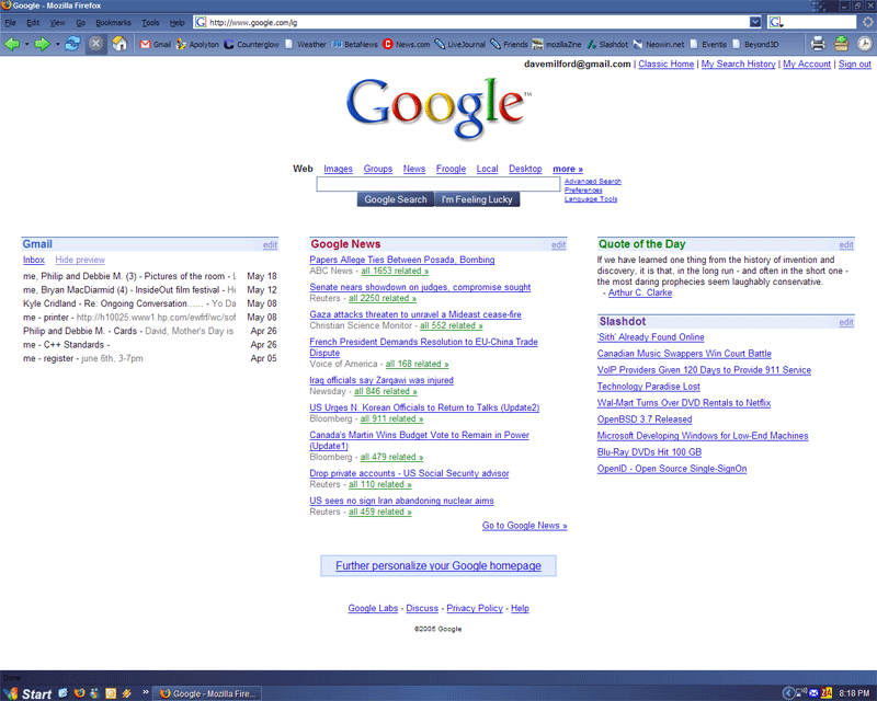 Add in an RSS whatsit and it'll be awesome. My homepage is already a handy bookmark list with Google on top, so this works well.