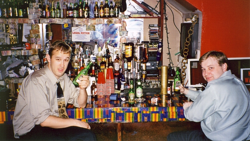 • Finally, here's one from 16 June, where Timex, Dan and I met once again and ended up at a bar where you could get Zimbabwean beer (Timex bought a round for us, and we're trying them out in the pic).