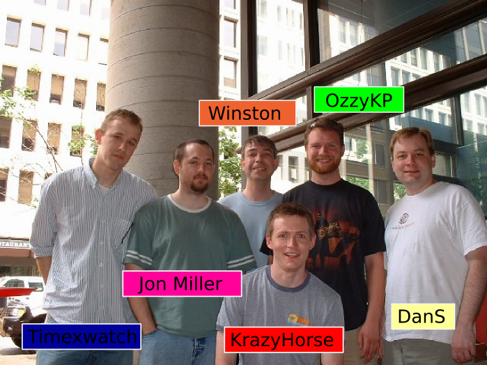 Picture is from 11 June 2005. Left to right: Timexwatch, Jon Miller, OzzyKP, DanS and KrazyHorse.