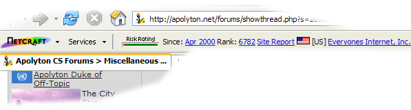 The toolbar runs on any operating system supported by Firefox and displays the hosting location, country, longevity, poularity, and an abstracted risk rating for each site visited.