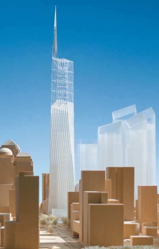 This obsession with symbolism extends all the way up to the tower's spire. Childs has long been itching to reposition the original spire, which as Libeskind envisioned it had to be set at the edge of the tower to echo the outstretched arm of the Statue of Liberty.
