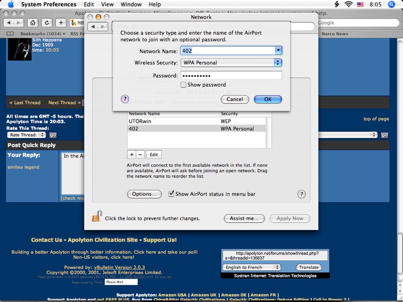 the laptop then ask me the wep password which I assume is the serial number from my modem since that is how it worked with my laptop that is not a macWhen you find yourself arguing with an idiot, you might want to rethink who the idiot really is.