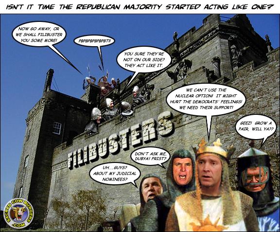 • The lack of a vote is a decision on the part of the Senate. Just as killing it by a blue slip or in the Judiciary Committee is a decision on the part of the Senate. The Senate is structured such that strong majorities can veto the will of a simple majority, and a filibuster is one of the parliamentary tactics that allow that. The same philosophy is why Orrin Hatch gets the same vote as Barbara Boxer; if the popular majority got its way, the Dems wouldn't even need a filibuster to kill the Bolton nomination.