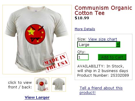 Haha, US flag t-shirts are made in China, while the Commiehead is made in USA.