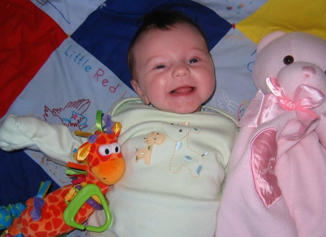 She has this kewl little toy that hooks on her crib that pretty much hypnotizes her too, best thing ever. That crib is getting crowded.