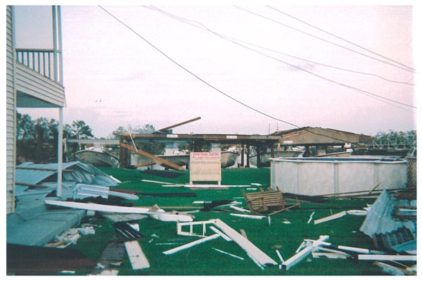 Just a few hours after the leeves broke the first time, I sent an E-mail to the owner of the fishing charter that brought me on a nice fishing trip when I was in New Orleans 2 years ago, wishing him well and regretting his loss. He replied last night, sending a few pictures. Looks like his property avoided the flooding but had a lot of wind damage. At least the boats look safe. I hope they survive Rita too. They are good folks.