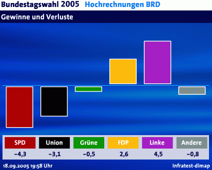 But practically the Linke will probably not play a role since the other parties see them still as a derivate of the former Eastern communist party SED and therefore don't like them as partner in a coalition.