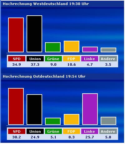 However, the Linkspartei simply isn't accepted here by any of the other parties, so even without the Schroeder-Lafontaine problem there wouldn't be much chances that they get involved somehow in the government, or that the others would form a minority gov to be tolerated by the Linke. This happens in some regional govs, but it is next to impossible on the national level.