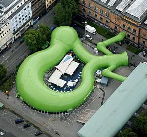 It's supposed to be a frog and contains an art exhibition. Too bad it's not permanent.