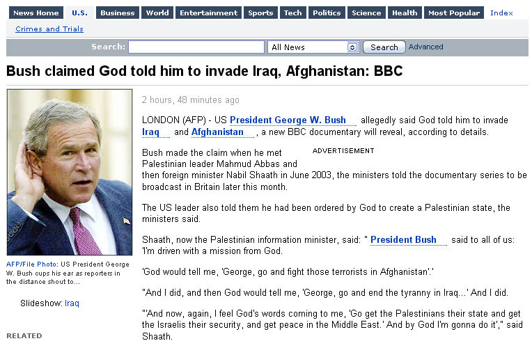 The White House has claimed Bush never said god told him to invade any place, however, I recall seeing a video a while back of him saying god talks to him.